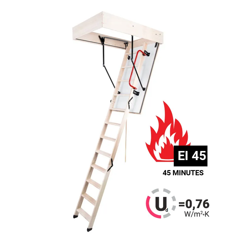 Модель EXTRA идеальна для условий, когда чердак плохо утеплен и требует дополнительной теплоизоляции. По контуру короба одинарный уплотнитель. Лестница имеет нескользящие ножки, которые идеально прилегают к земле, предотвращают появление царапин на поверхности пола и придают эстетичный вид после ее резки. 4-х секционная складная чердачная лестница. Высота потолка до 3350 мм.
