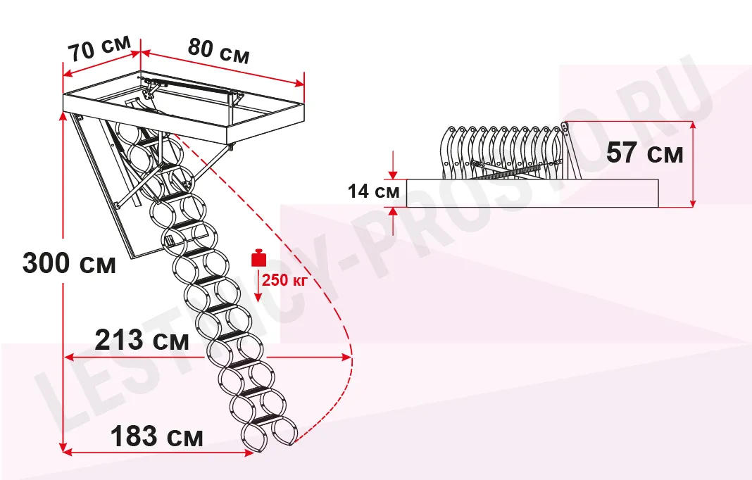 Чердачная лестница с люком OMAN NOZYCOWE LUX 70х80 см, h-300 см
