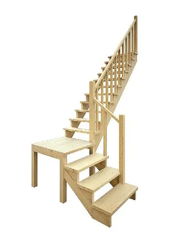 Лестница складная трёхсекционная, изготовлена из сосны. Термоизоляционная крышка типа "сэндвич" утеплена пенопластом, облицована с двух сторон ДСП белого цвета. Короб люка с однослойным уплотнителем. Все металлические элементы лестницы покрыты порошковой краской, ступени лестницы имеют антискользящие насечки и закреплены в столярное соединение «ласточкин хвост», что позволяет выдерживать нагрузку  до 150 кг. Деревянный стержень для открывания лестницы в комплекте.
