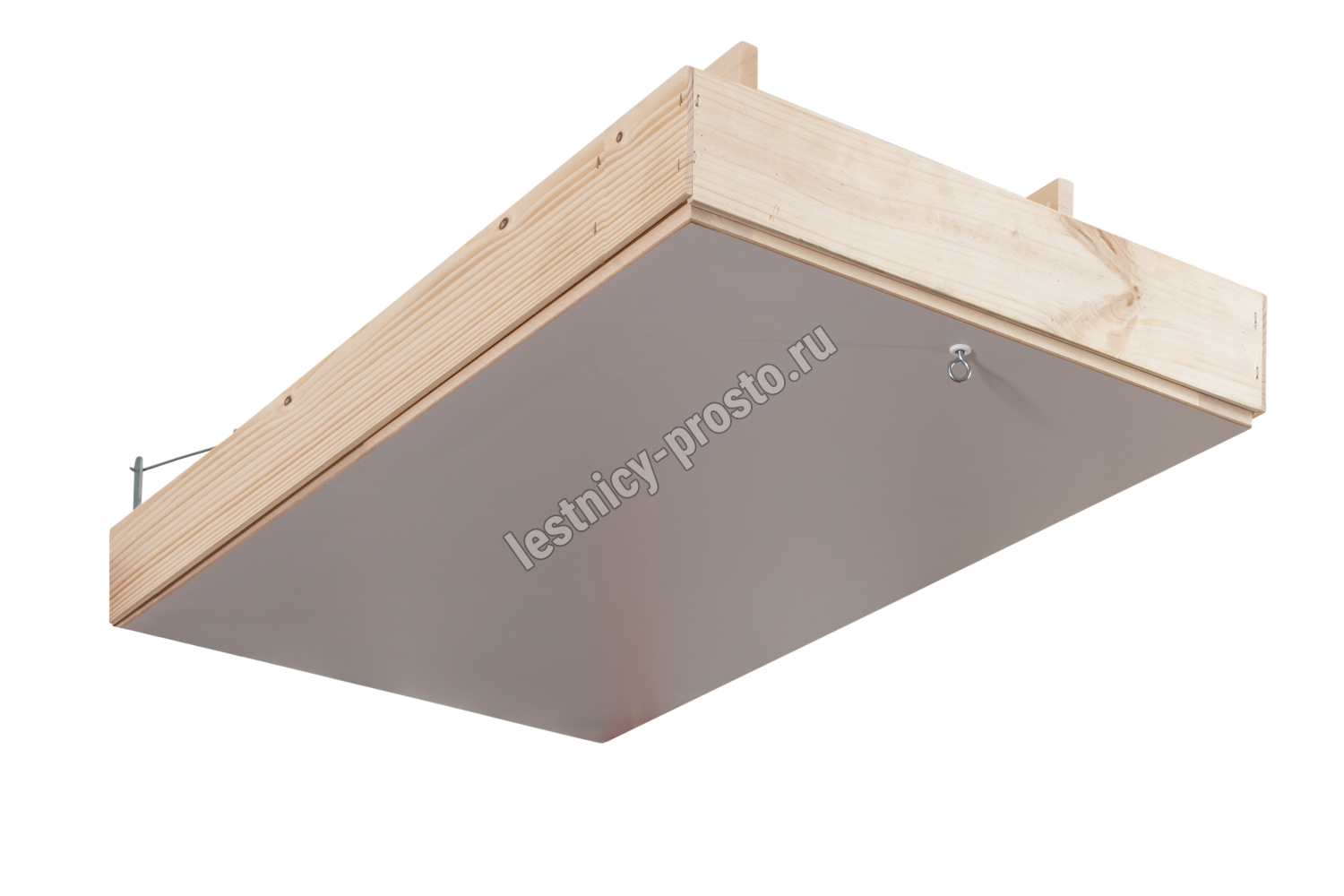 В изготовлении лестницы используется дерево хвойных пород. Лестница оснащена утепленным двусторонним белым люком, который практически не заметен на потолке. В случае необходимости крышку люка можно перекрасить в любой другой, подходящий для интерьера цвет.