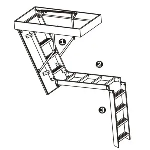 Складная 4-х секционная чердачная лестница. Рабочая поверхность полностью выполнена из алюминия. Термоизоляционная крышка типа "сэндвич" имеет усиленную теплозащиту, облицована с двух сторон ДВП белого цвета. По контуру короба имеется уплотнитель; Все металлические элементы лестницы покрыты порошковой краской.
