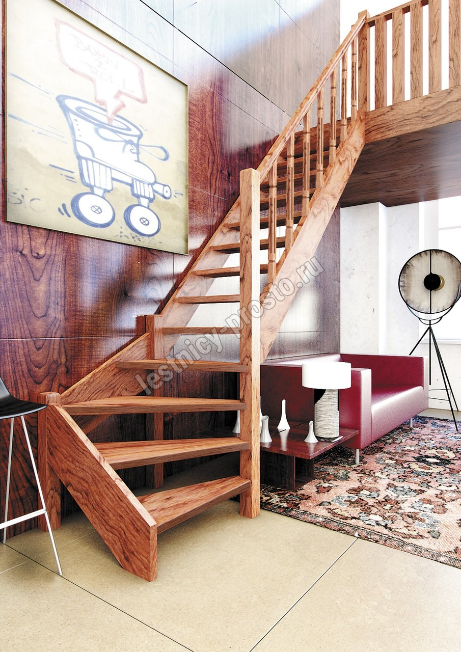 Деревянная межэтажная лестница ЛЕС-07 2470-2675 проем 2360-830, Лиственница