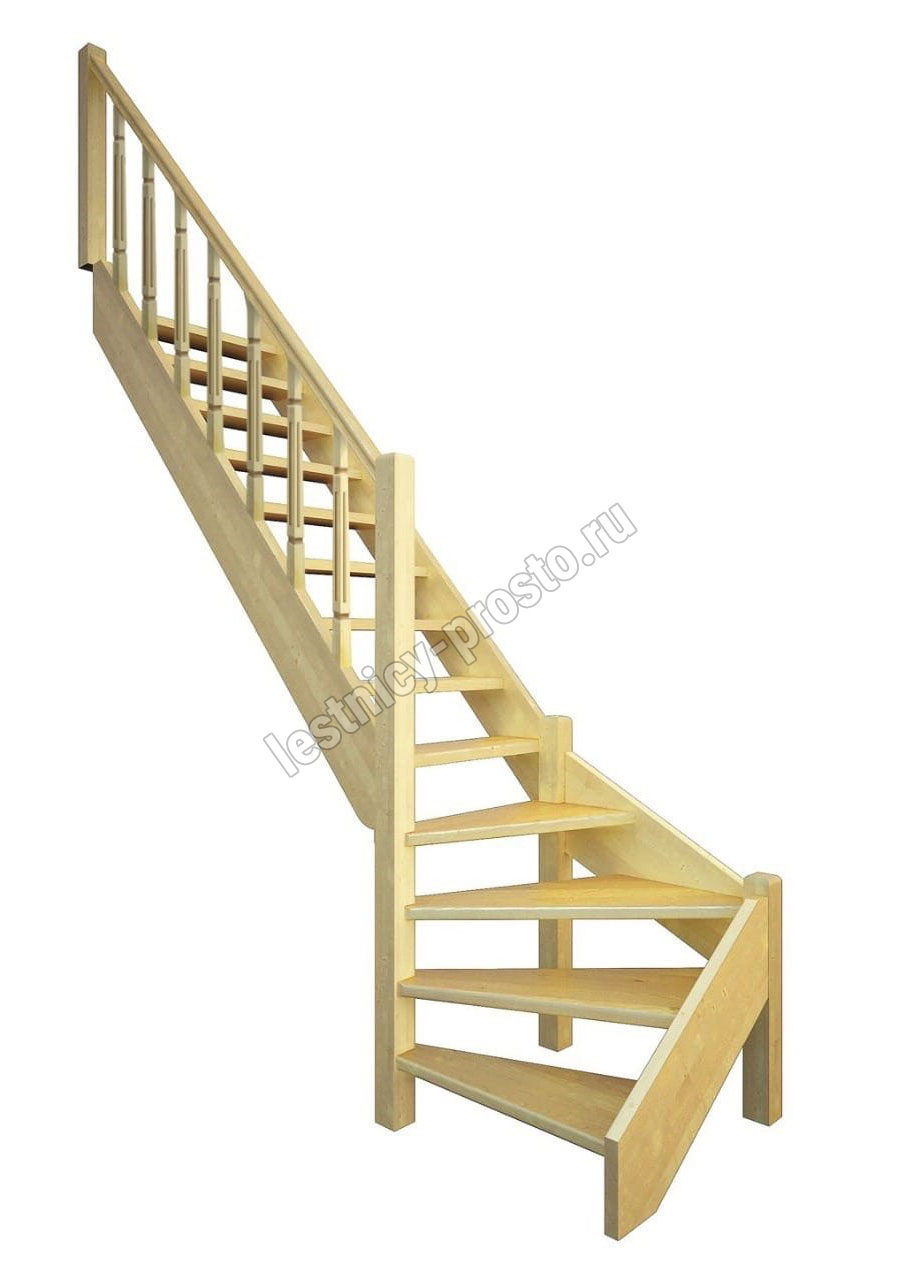 Базовый комплект включает в себя деревянные элементы лестницы и ограждения без какого-либо покрытия.