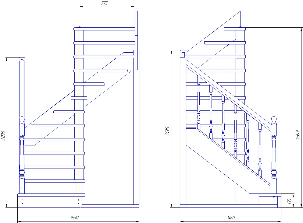 Базовый комплект включает в себя деревянные элементы лестницы без какого-либо покрытия. Лестница поставляется в разобранном виде.