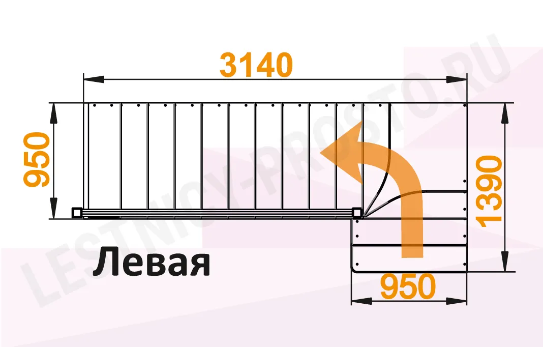 Схема лестницы К-031М/3 с поворотом налево