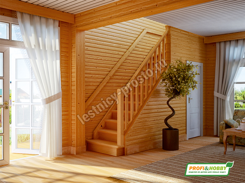 Ступени и поручень лестницы изготовлены из бука, остальные элементы из сосны.