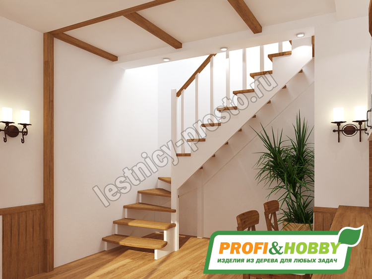 Цена указана за лестницу с дубовыми ступенями и поручнем, остальные элементы - сосна. Возможно изготовление этой лестницы целиком из дуба. Базовый комплект включает в себя деревянные элементы лестницы и ограждения без какого-либо покрытия.