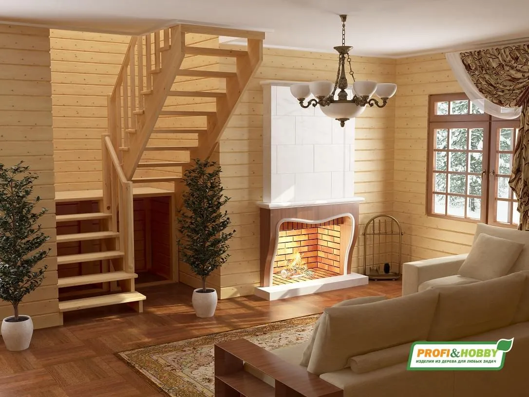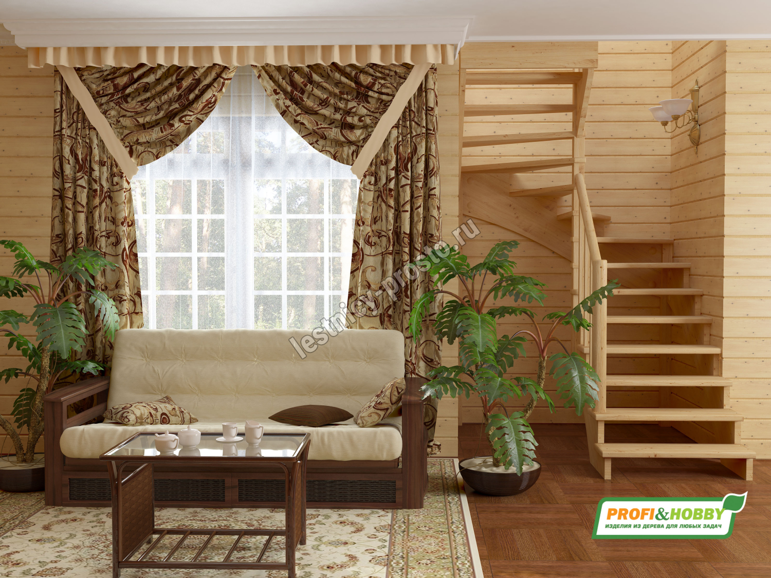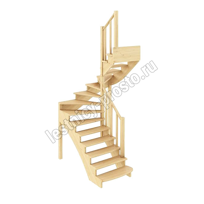 Ступени и поручень изготовлены из дуба, остальные элементы лестницы из сосны.
