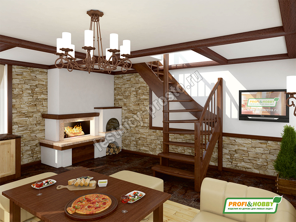 Ступени и поручень лестницы изготовлены из дуба, остальные элементы из сосны.