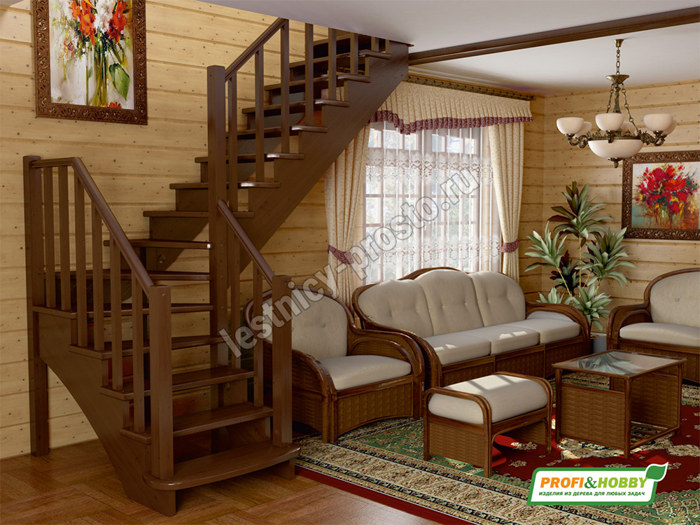 Базовый комплект включает в себя деревянные элементы лестницы и ограждения без какого-либо покрытия.