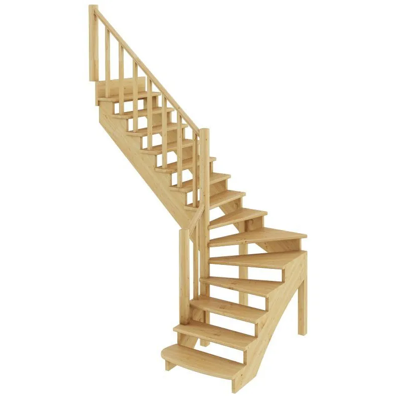 Ступени и поручень лестницы изготовлены из ясеня, остальные элементы из сосны.