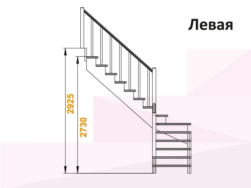 Базовый комплект включает в себя деревянные элементы лестницы с подступёнками и ограждение без какого-либо покрытия.