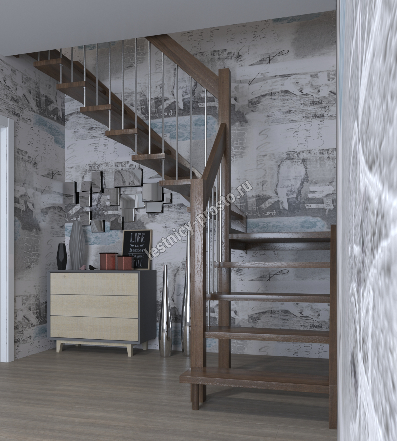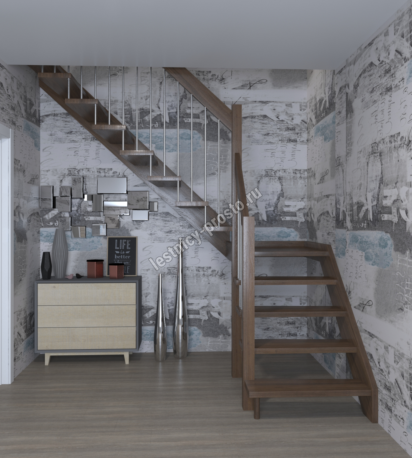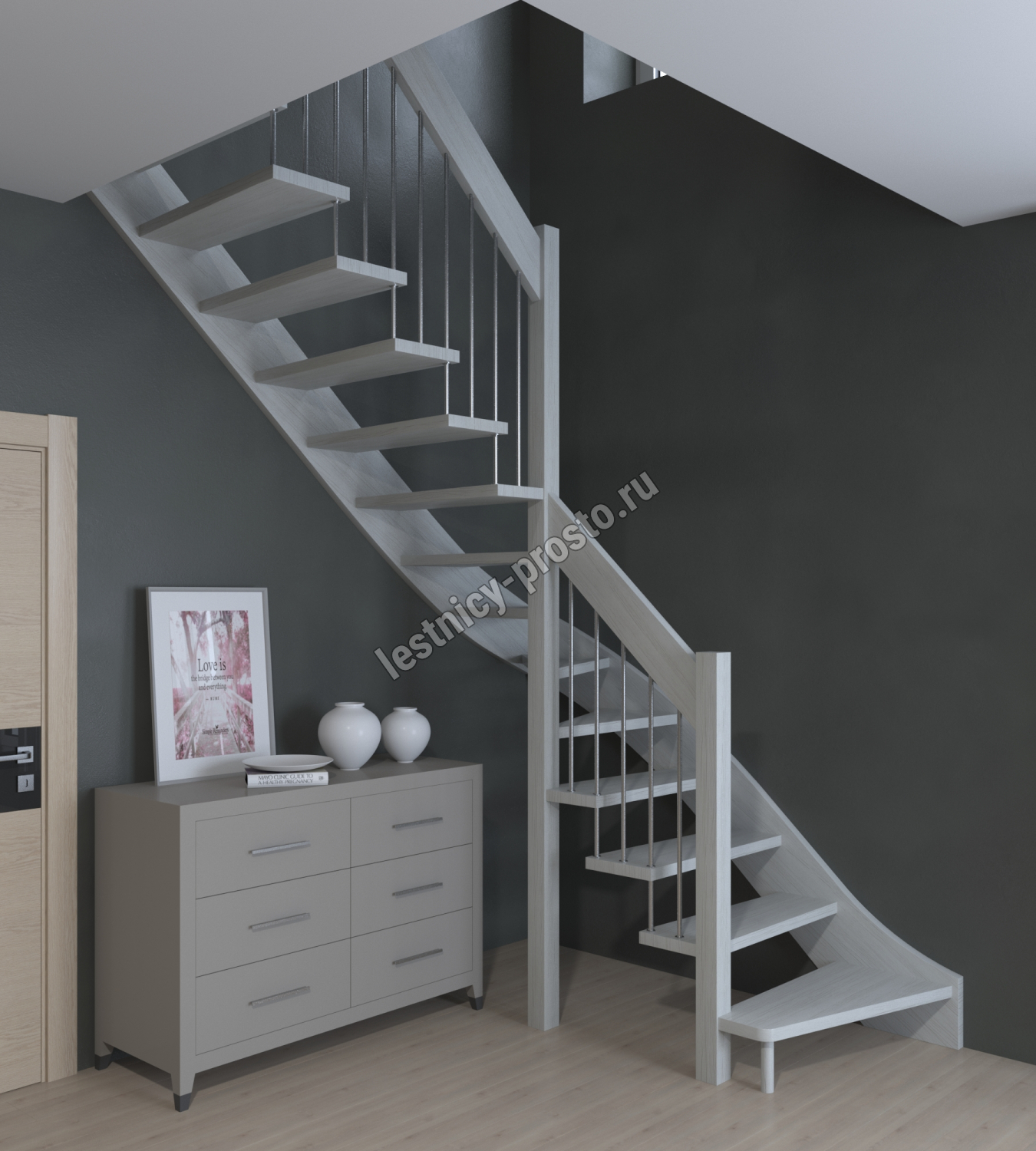 Лестница Prosto Console г-образная забежная ясень, h320 см