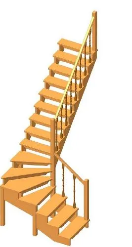 Мансардная лестница из ели М-011у с поручнем
