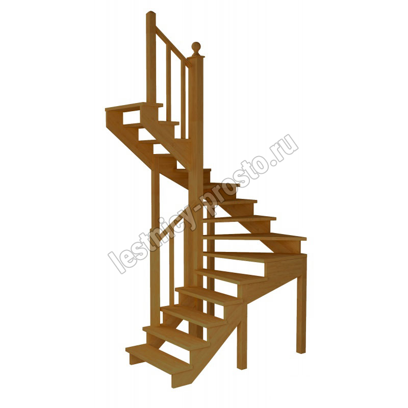 Лестница изготавливается под заказ. Возможны варианты подходящие под необходимые размеры проёма и высоту помещения. Базовое ограждение можно заменить на кованое или точеное. Лестницу можно дополнить подступенями, бортиками, миниподступенями. Первую ступень можно заменить на пригласительную - лекальную. Классическая модель поворотной лестницы раскрывает всю природную красоту натуральных материалов. У лестницы комфортная высота шага, удобный широкий марш и угол подъема. Указана стоимость лестницы без какого-либо покрытия.