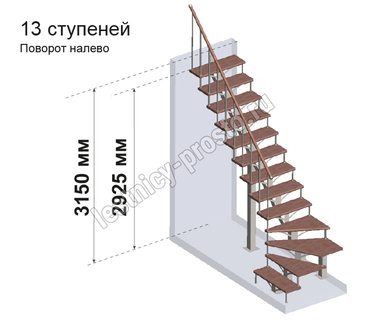 Комплект для Г-образной лестницы MONO h315 из 13 ступеней.