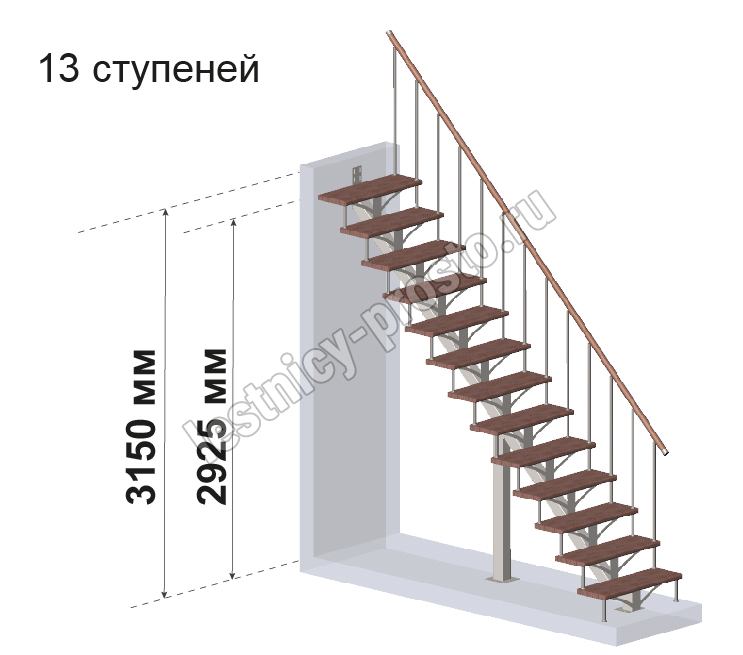 Комплект для лестницы на металлокаркасе PROSTO MONO из 13 ступеней.