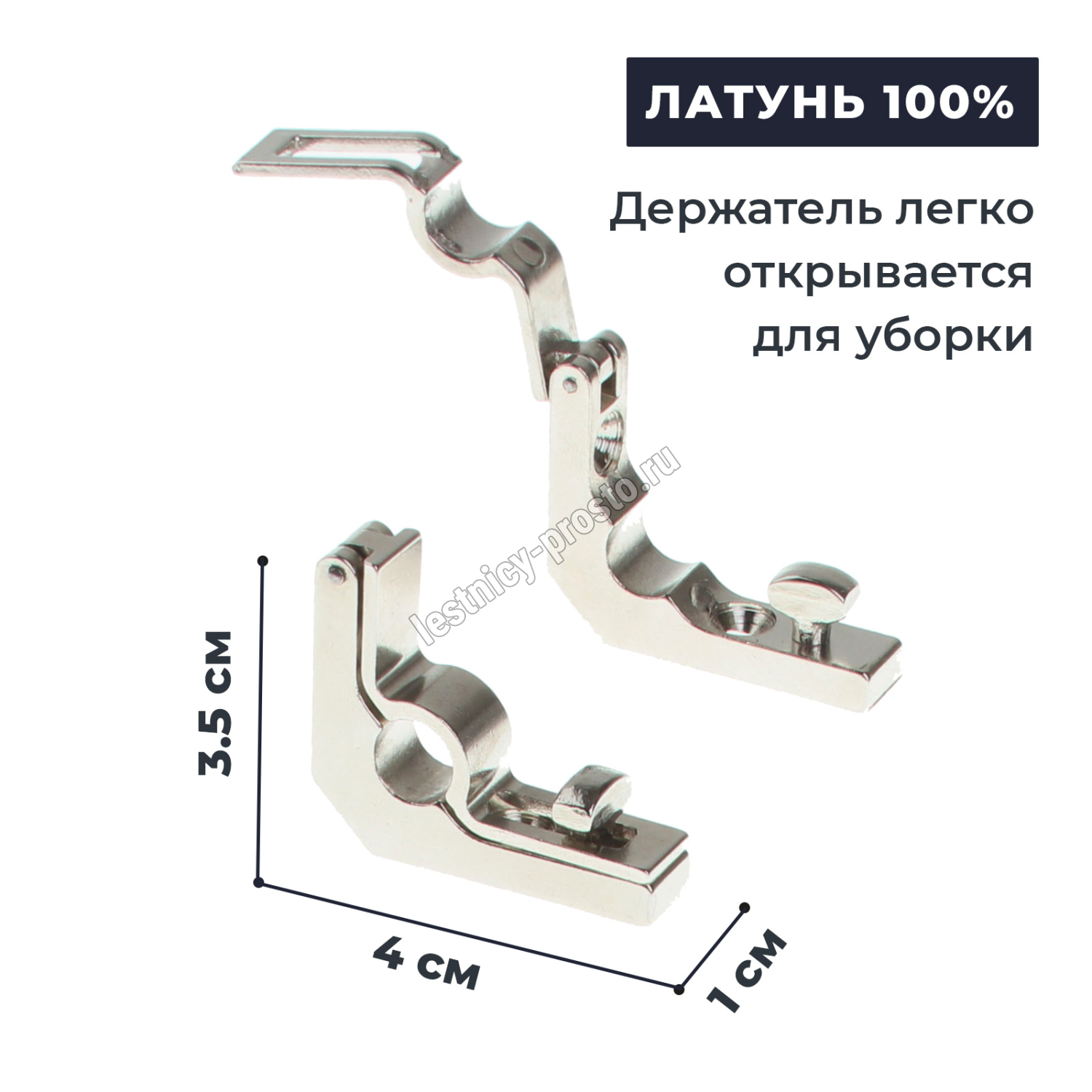 Ковродержатель комплектуется двумя держателями и двумя заглушками из латуни, а также прутком из нержавеющей стали.