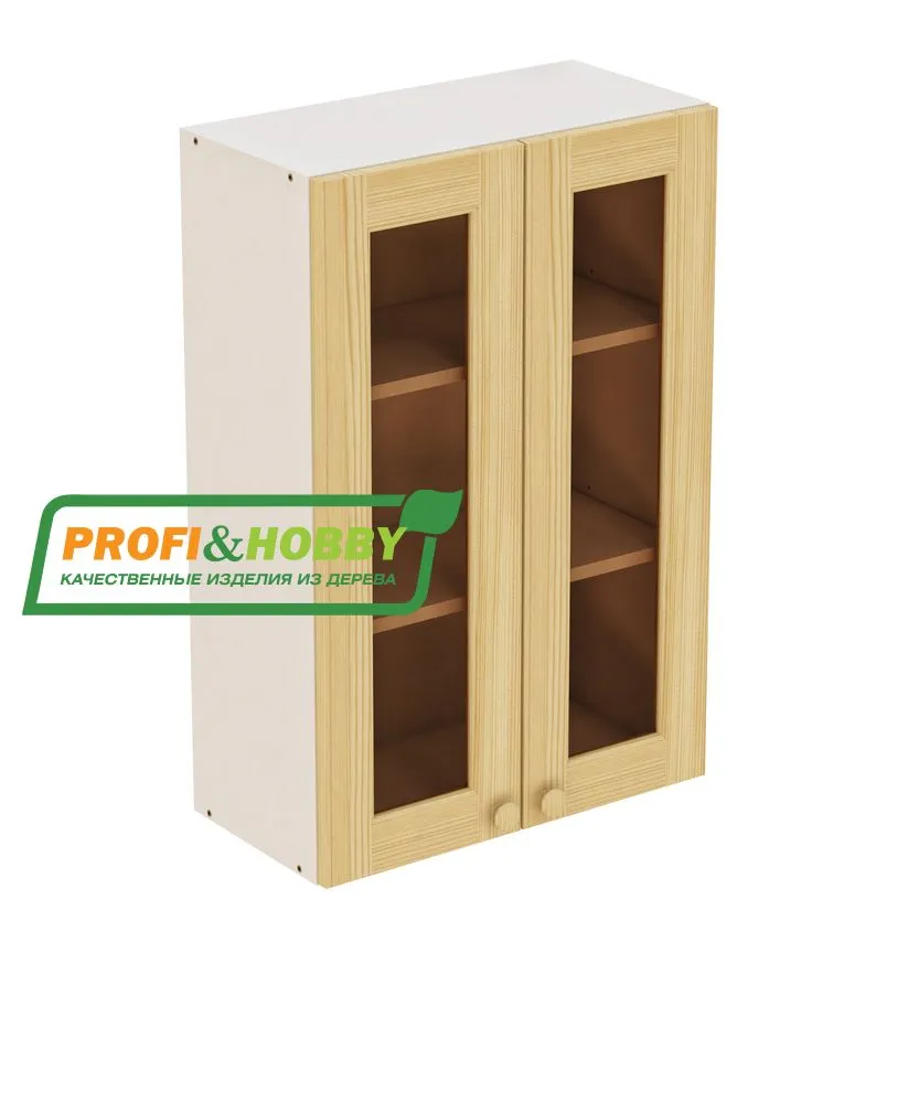Шкаф навесной 2 двери 600х340х960 + фасад сосна под стекло без покраски