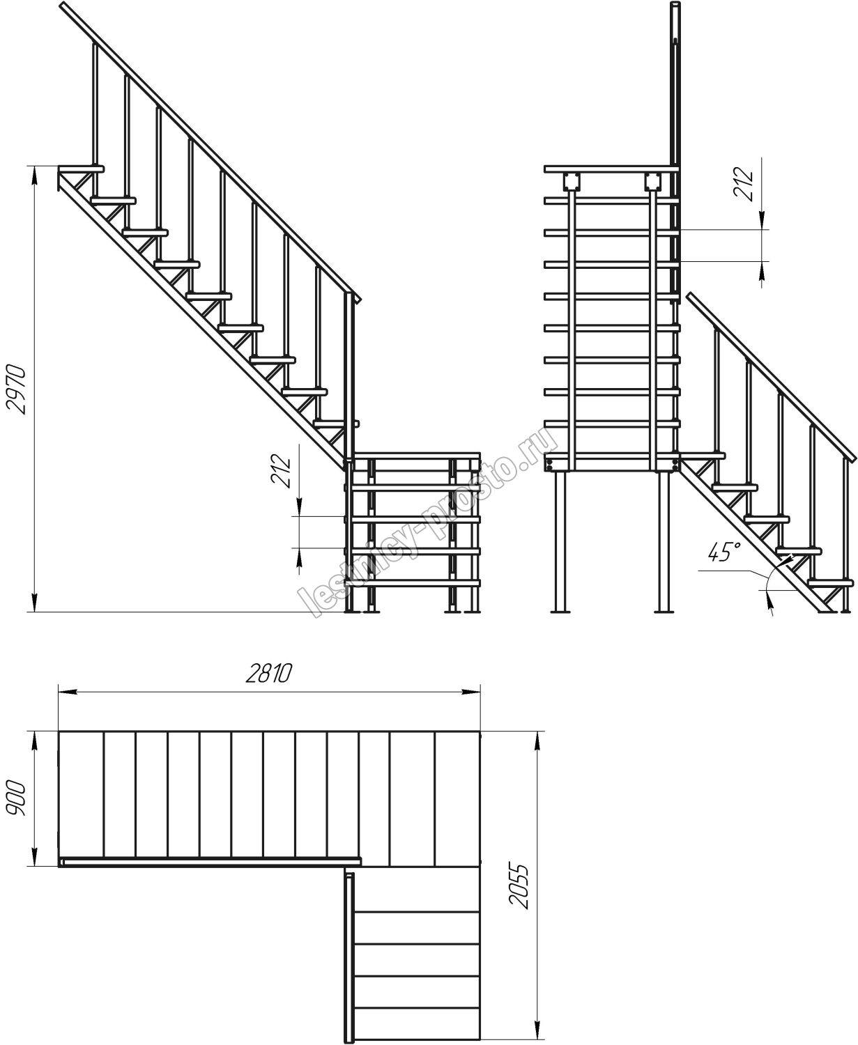 Высота лестницы 2970 мм
