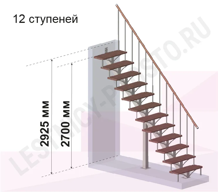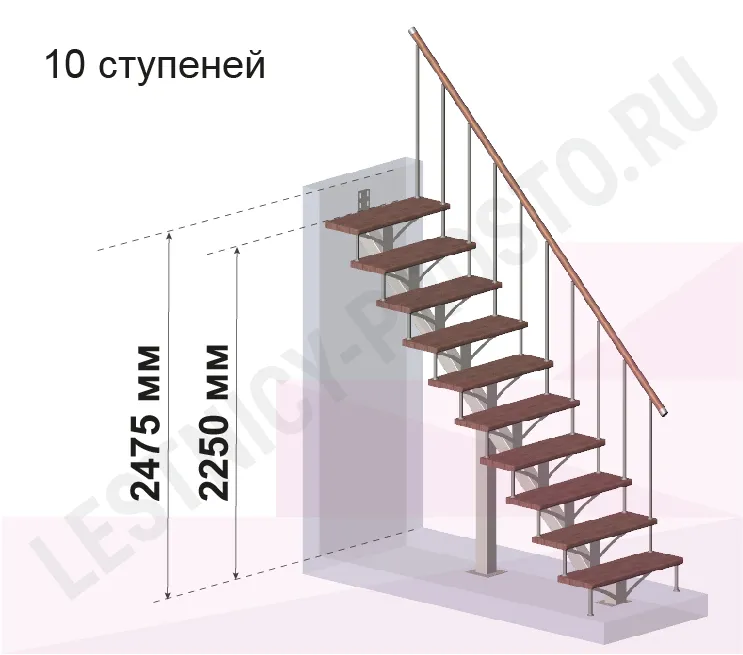 | Лестница PROSTO MONO прямая, h270 см, ступени хвоя |