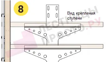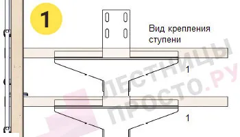 Вы можете выбрать для лестницы любой вид крепления ступеней из показанных ниже в блоке "Чертежи и схемы" (просто оформите заказ, мы позвоним вам для согласования деталей и уточним номер необходимого крепления) .