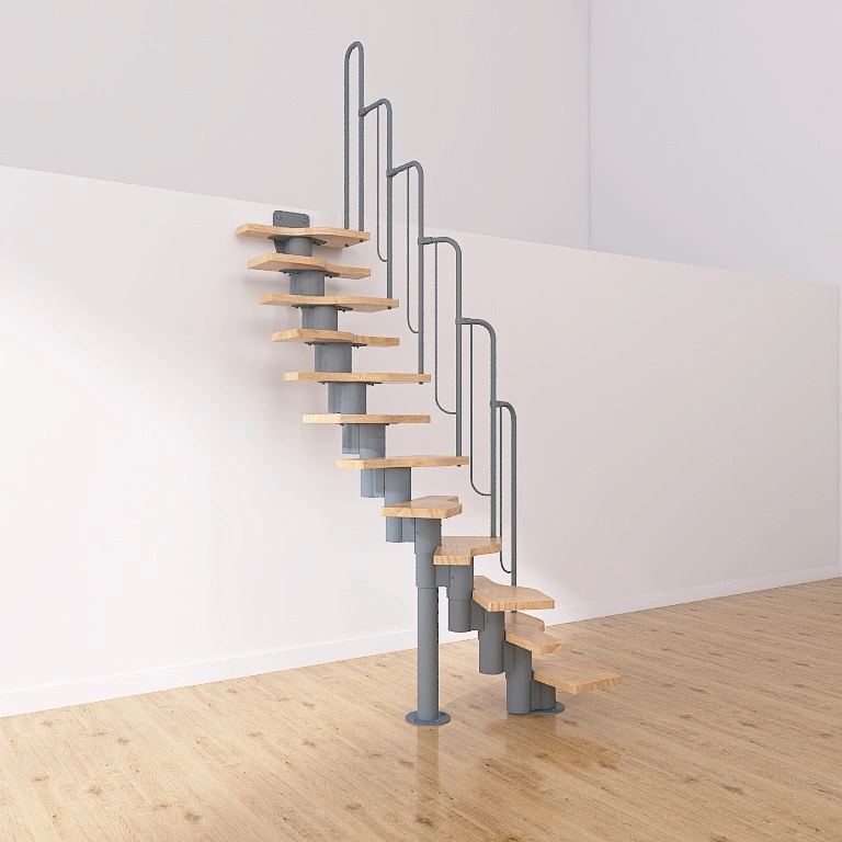 Поворот на 90° реализован посредством поворотных ступеней, высота поворота определяется параметрами вашего помещения и размерами проёма.