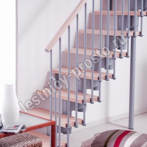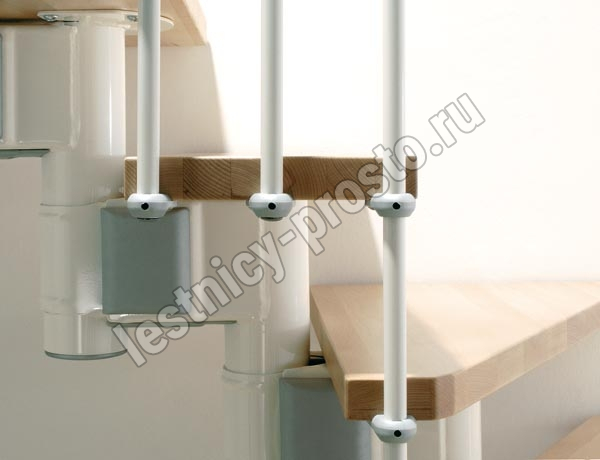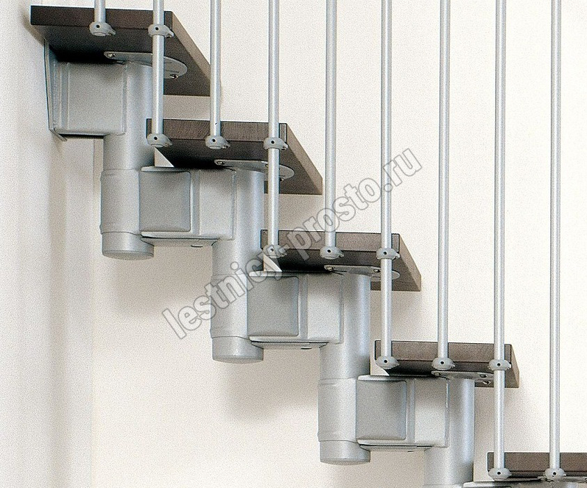 При монтаже этой лестницы, возможно регулировать высоту и глубину шага, таким образом можно получить лестницу под высоты этажа в диапазоне 2250 - 3030 мм, кроме того, установив дополнительный комплект увеличения высоты, можно поднять высоту лестницы до 3730 мм. Ширина проступи регулируется при монтаже в пределах 180 - 220 мм. Каркас и стойки ограждения выполнены из пластифицированного металла.