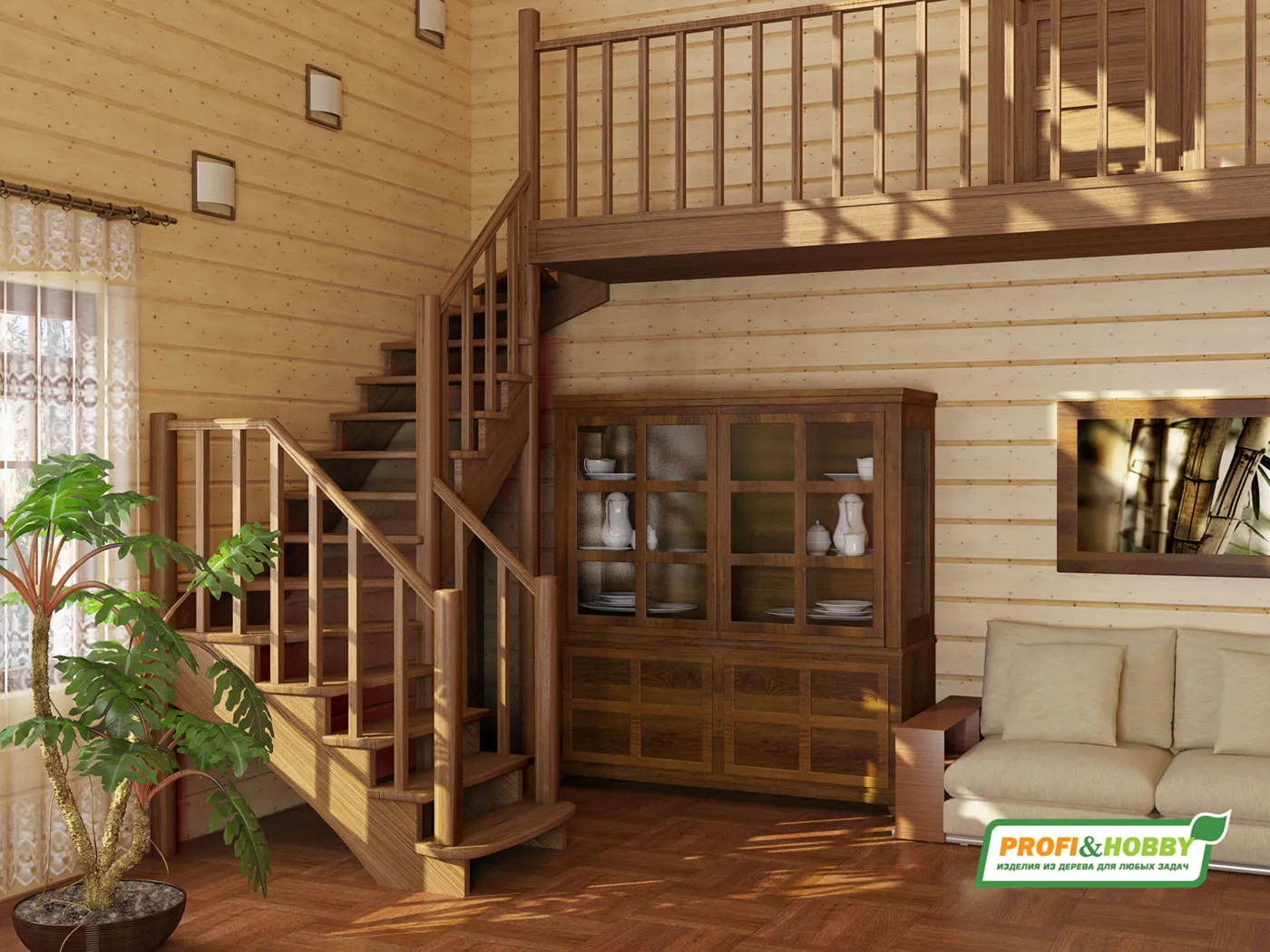 Ступени лестницы изготовлены из дерева категории А/В без какого-либо покрытия.