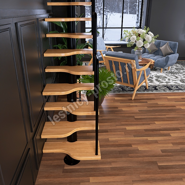 Лестница Prosto Urban Black гусиный шаг 700 мм, h234-336 см (13 ступеней), берёза мультиплекс