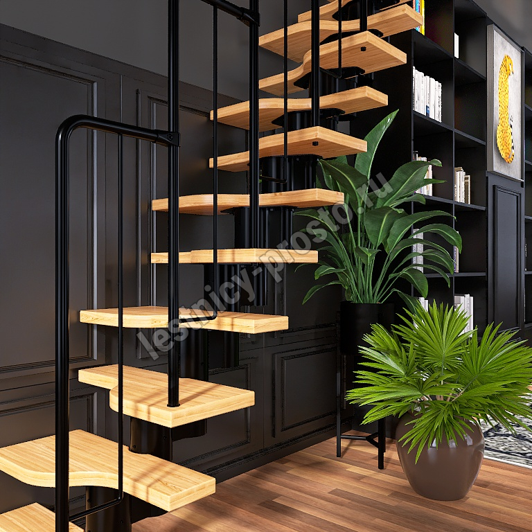 Лестница Prosto Urban Black гусиный шаг 700 мм/Ступени из срощенного ясеня