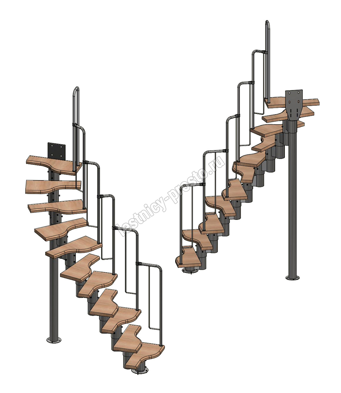 Лестница Prosto Urban Black гусиный шаг 600 мм, h198-288 см (11 ступеней), бук
