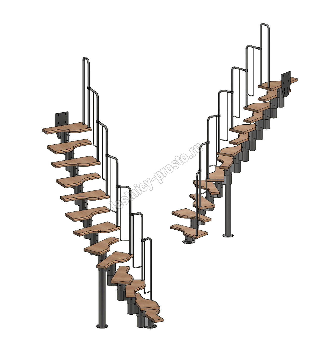 Лестница Prosto Urban Black гусиный шаг 600 мм, h234-336 см (13 ступеней), бук