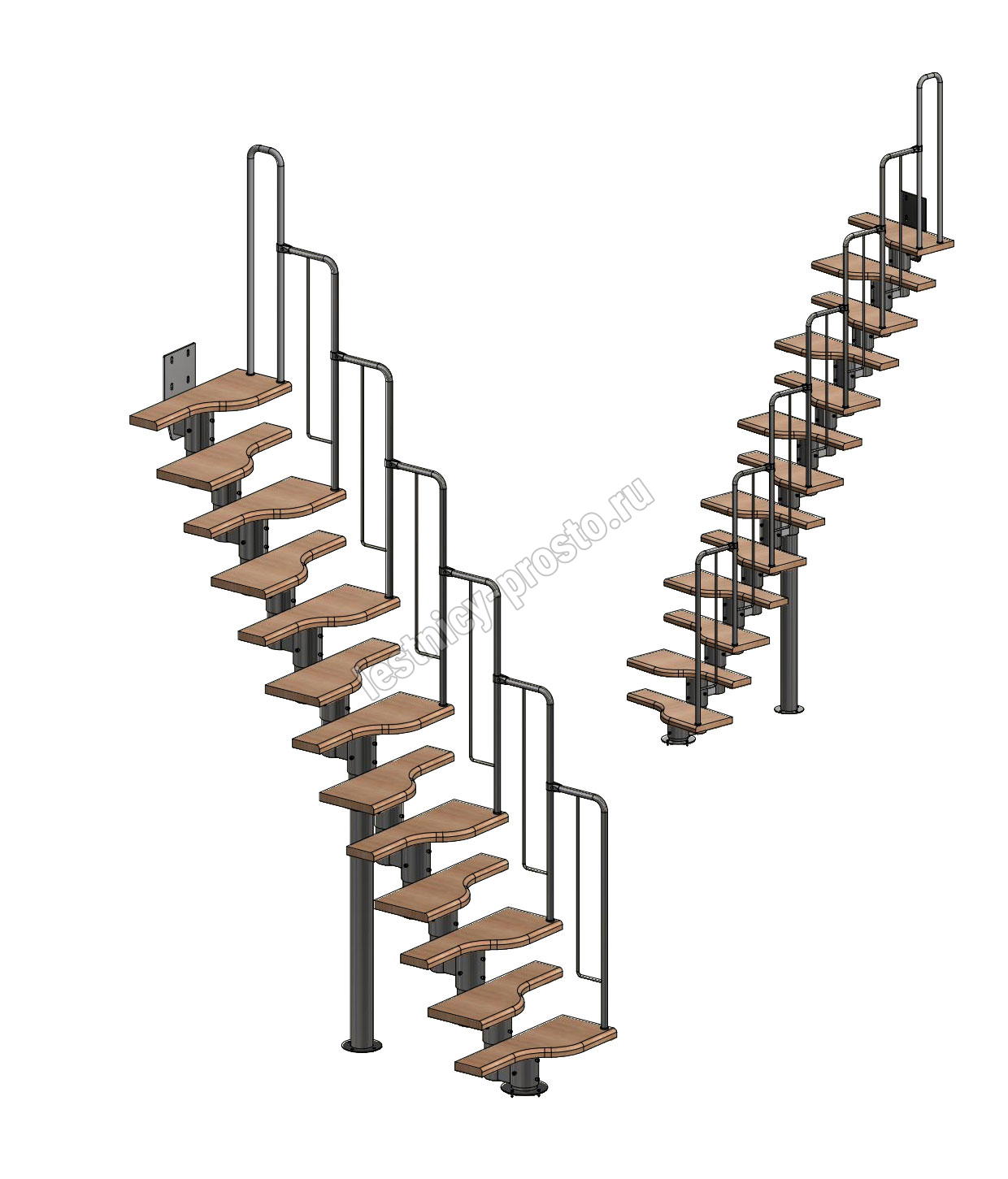Лестница Prosto Urban White гусиный шаг 700 мм, h234-336 см (13 ступеней), бук