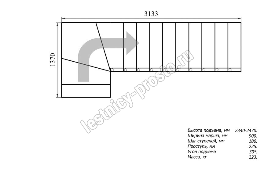 Модульная лестница Фаворит 180 2340-2470, Черный, Сосна, Крашеная, Без Ступений