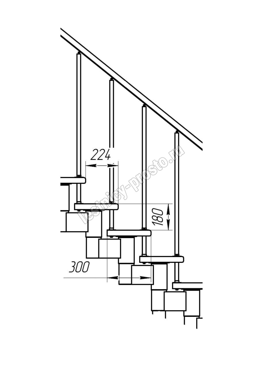 Модульная лестница Фаворит 180 2700-2850, Серый, Сосна, Нержавеющая сталь