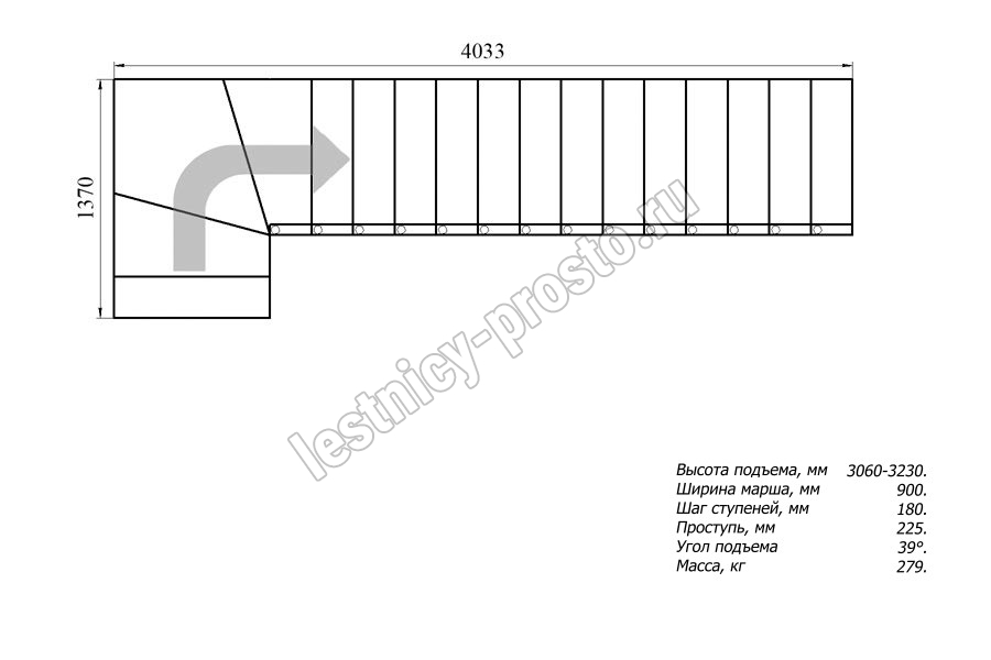 Модульная лестница Фаворит 180 3060-3230, Серый, Сосна, Крашеная