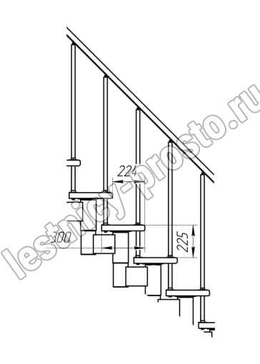Модульная лестница Фаворит 225 2700-2820, Черный, Бук, Нержавеющая сталь