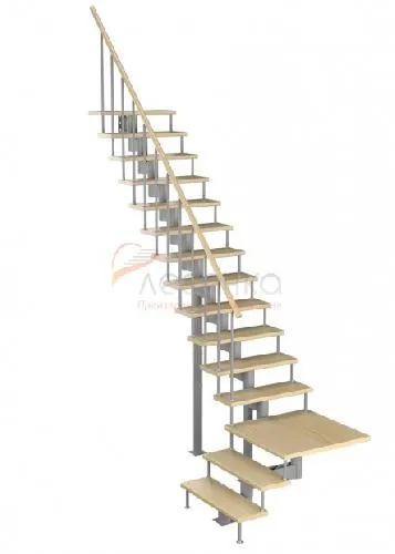 Модульная лестница Фаворит 225 3375-3525, Серый, Лиственница, Нержавеющая сталь