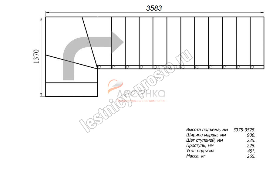 Модульная лестница Фаворит 225 3375-3525, Серый, Сосна, Крашеная, Без Ступений