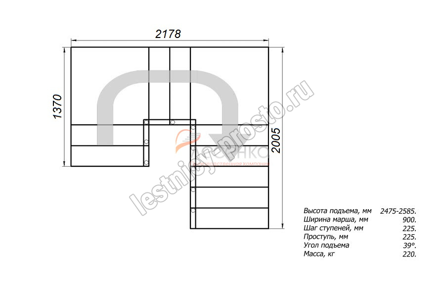 Модульная лестница Комфорт 225 2475-2585, Черный, Лиственница, Крашеная