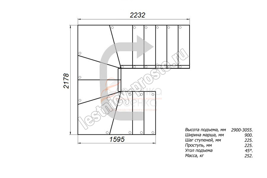 Модульная лестница Спринт 225 2925-3055, Белый, Сосна, Крашеная