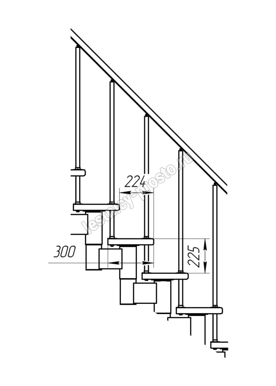 Модульная лестница Статус 225 2250-2350, Серый, Бук, Нержавеющая сталь