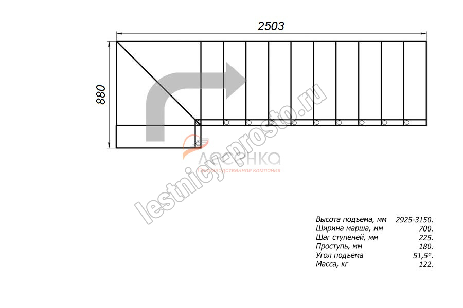 Высота лестницы 2925 - 3150 мм
