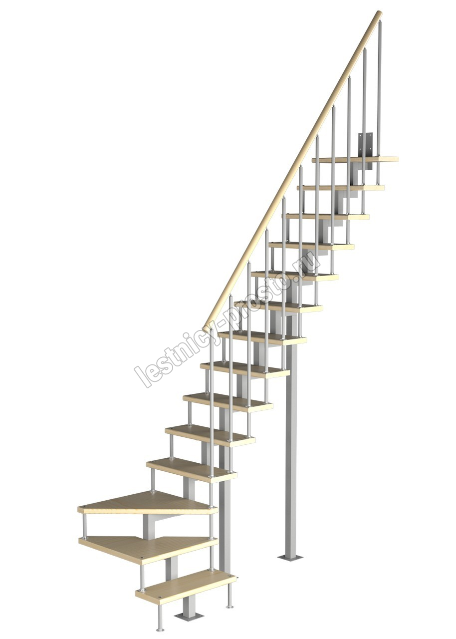 Модульная малогабаритная лестница Компакт 3150-3375, Серый, Бук, Нержавеющая сталь