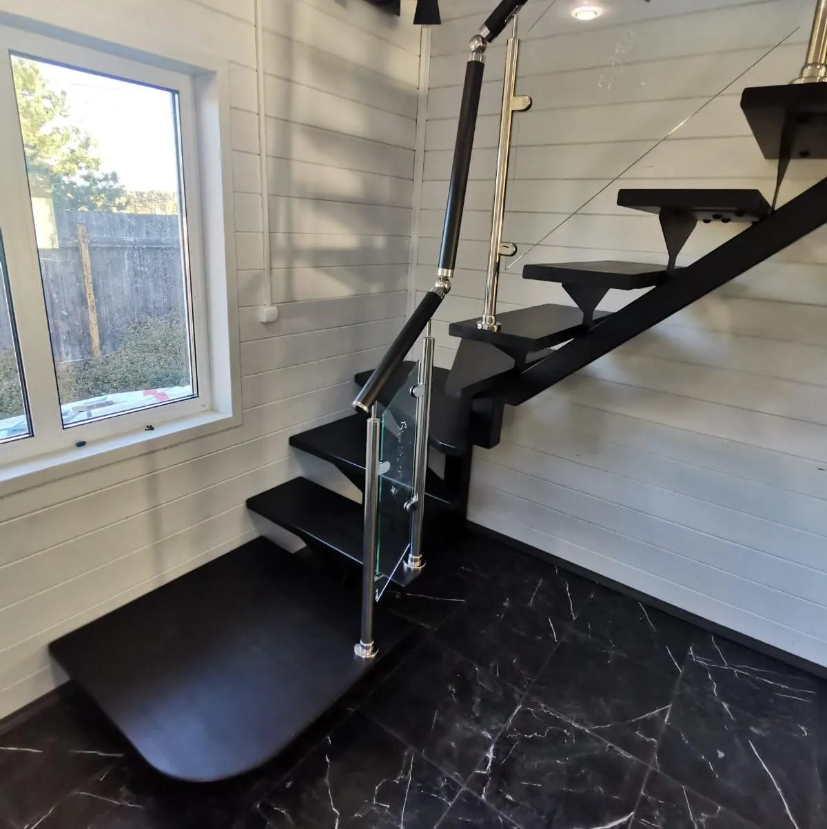 Стеклянная лестница из ясеня LP-2935 с металлическим каркасом