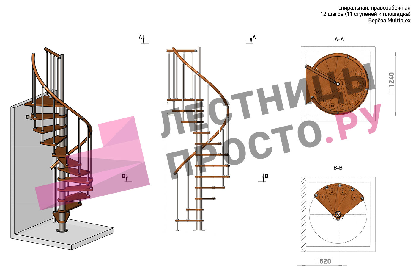 Решение об ориентации поворота лестницы принимается при сборке (комплект собирается и в правозабежную, и в левозабежную лестницу)