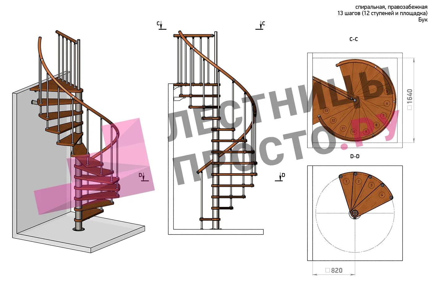 Винтовая лестница Prosto Spiral Black D160см, h282.2-326,3 см, бук