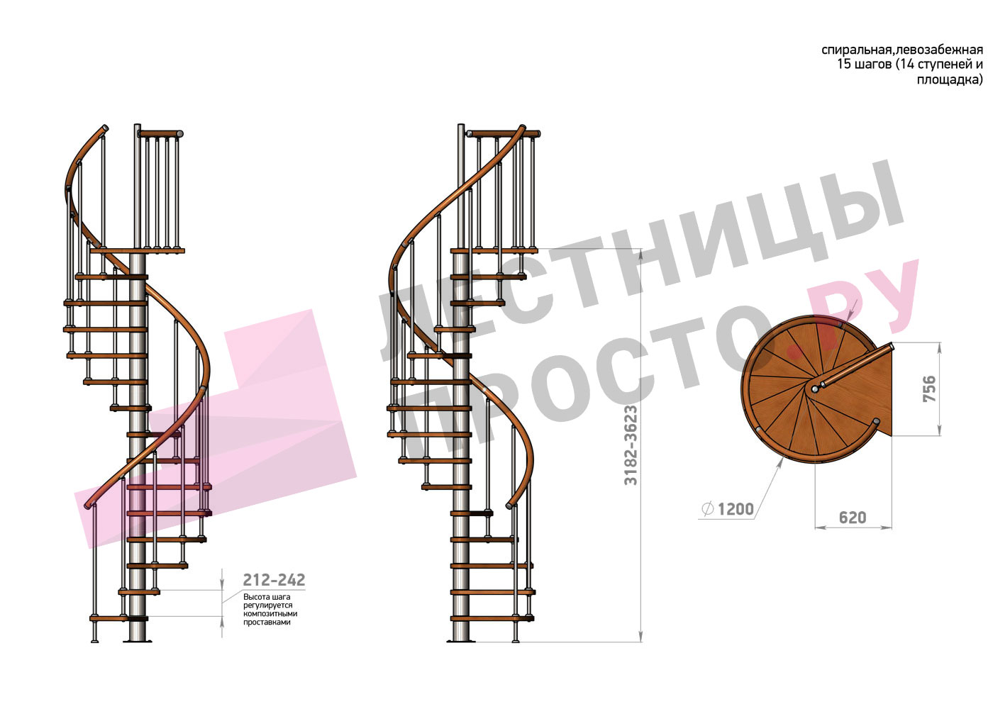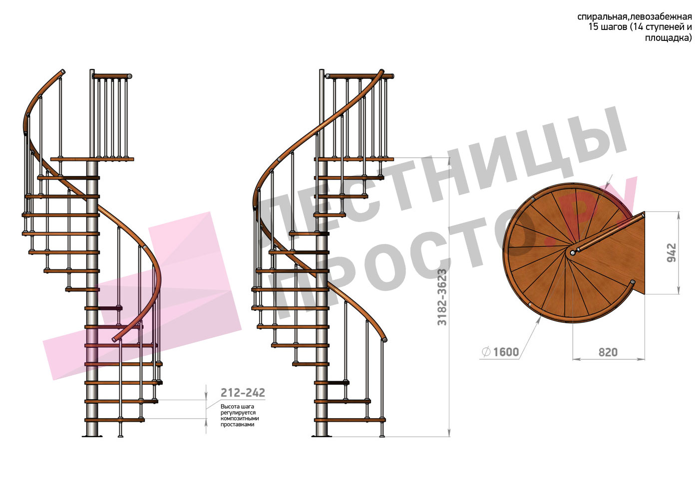 Винтовая лестница Prosto Spiral Black/Высота 3182 - 3623 мм