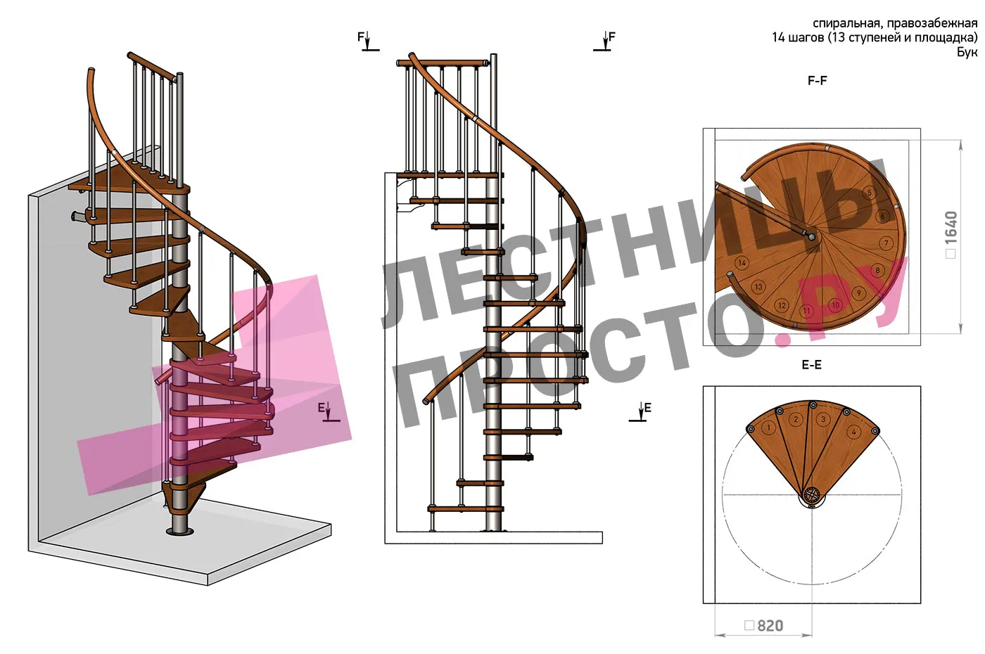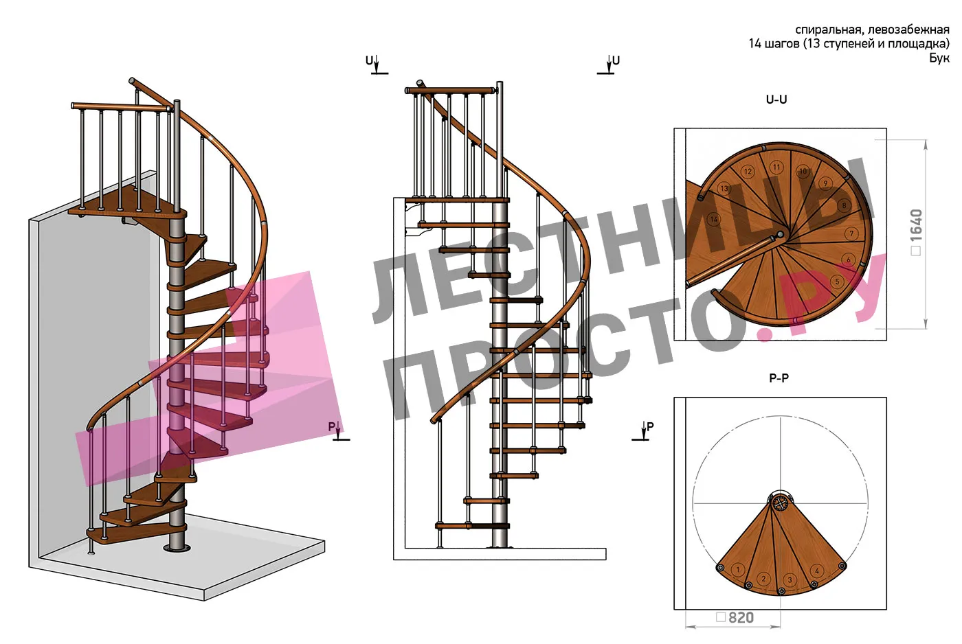 Винтовая лестница Prosto Spiral White D160см, h282.2-326,3 см, бук |